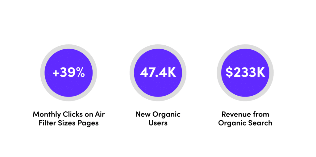 This ecommerce brand in the home and HVAC space had thousands of air filter SKUs, but their size-specific pages weren’t showing up where it counted.
